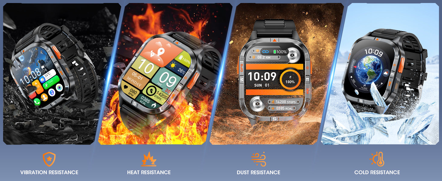 Shadow-Tracker Smart Watch has an IP68 certification, it's been tested underwater, in the snow (even freezing the watch), and in other harsh Environments. While it is certified water-resistant, pressing buttons underwater is not recommended.Mingdaln Smartwatches are very well known for their excellent resistance to hard impacts and harsh environments. However, all the resistant characteristics have been tested in controlled conditions. For that reason, we recommend not submitting your watch to extreme tests since some non-controlled factors could affect the actual performance.